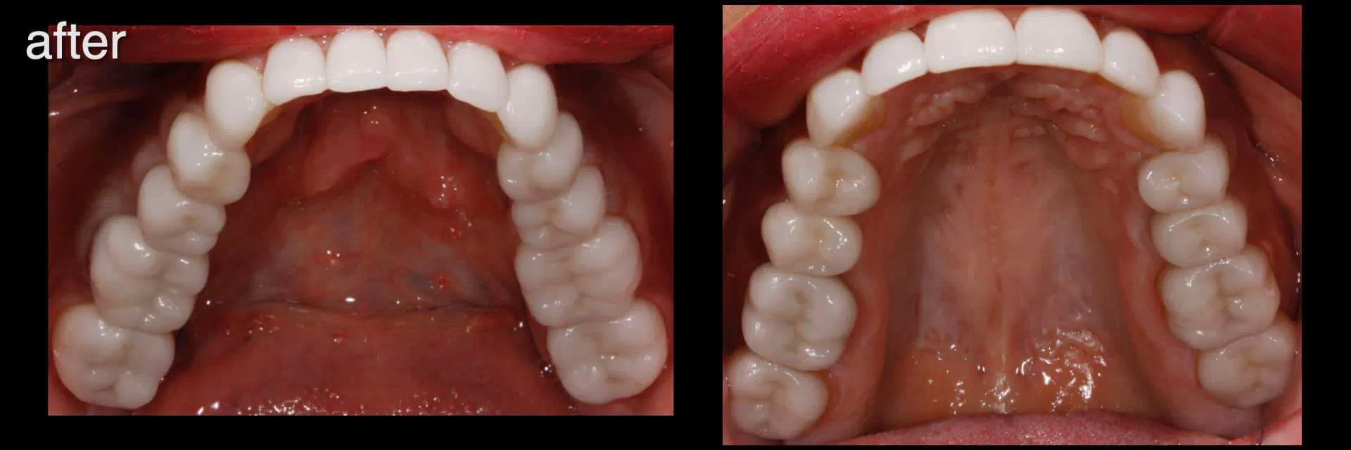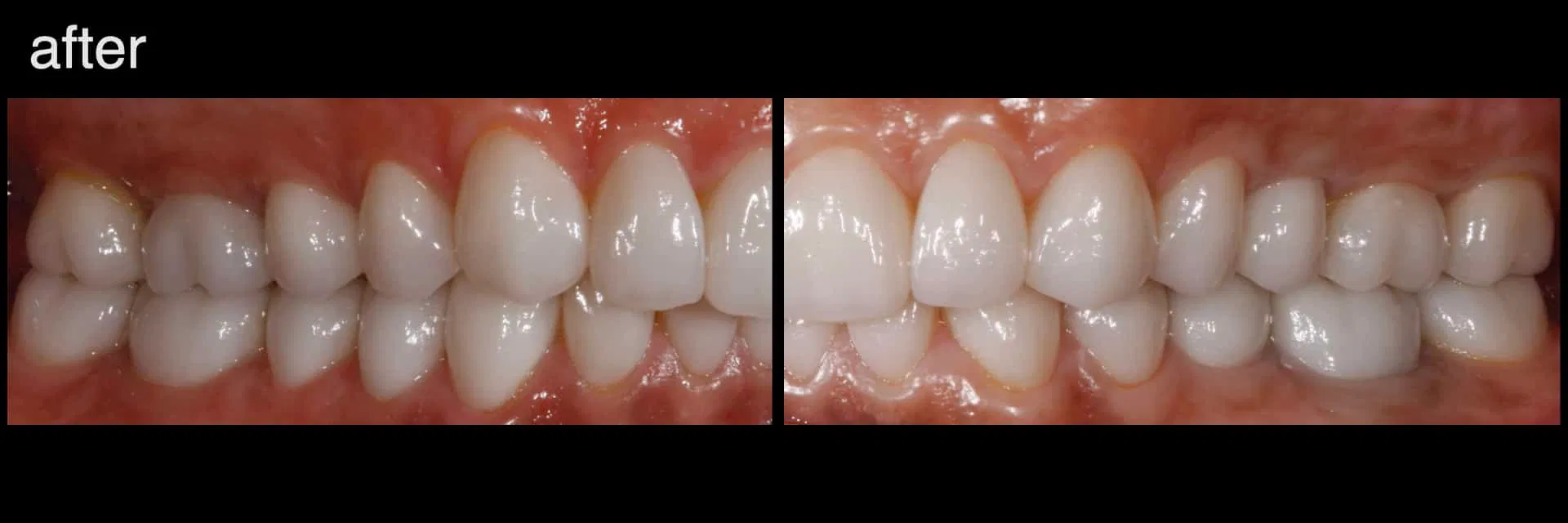 Outcome: Enhanced dental occlusion/bite. Restored teeth dimensions and aesthetics.