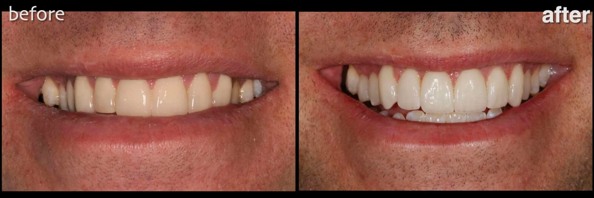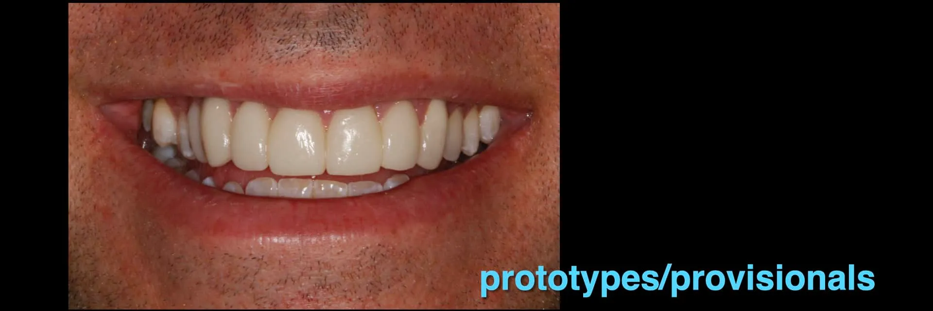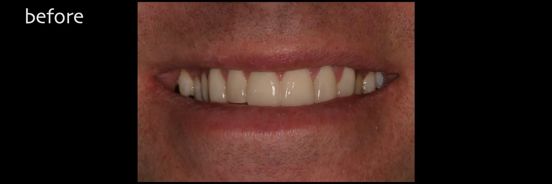 Clinical Findings: Malocclusion (heavy anterior occlusion with lack of posterior contact/support). Existing upper anterior porcelain veneers exhibiting chipping, poor marginal integrity and questionable aesthetics.